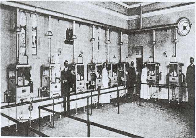 Abb. 4 Das Innere des Ausstellungsgebäudes während der Pan-American Exposition in Buffalo, 1901. Es enthält acht Inkubatoren, jeweils mit einem Frühgeborenen überschritten wurde.